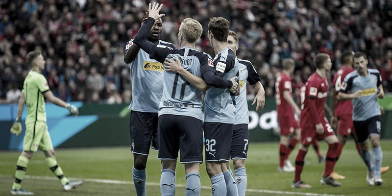 Compactado e devidamente preparado para o futebol “Boszball” do Leverkusen, o Gladbach se postou bem em campo e defendeu com maestria nos minutos iniciais, até começar a incomodar, surgindo assim, a estrela de Marcus Thuram. O francês aplicou um drible desmoralizante no brasileiro Wendell e cruzou na medida para Oscar Wendt, aparecendo como elemento surpresa e tendo apenas o trabalho de empurrar a bola para o fundo das redes. O belíssimo tento anotado pelos Foals, no entanto, não pôde ser celebrado por muito tempo, pois em poucos minutos, Kevin Volland igualou o marcador, após excelente bola em profundidade – o alemão partiu em progressão e, sozinho, driblou Sommer e marcou.