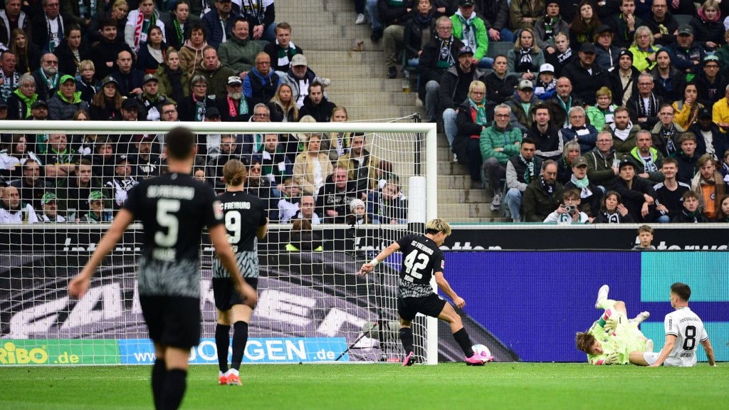 Apesar de um início até promissor, o Gladbach sofreu o primeiro gol logo aos 7’. A defesa perdeu pelo alto, deixou Max Eggestein livre na entrada da área, e apesar da finalização do meio-campista não ter sido das melhores, ela acabou sofrendo desvio, aproveitado por Gregoritsch, que se antecipou a Scally para marcar. O Borussia quase respondeu de forma imediata, mas Rocco Reitz foi devidamente bloqueado quando estava pronto para igualar o marcador.